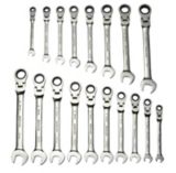 This ratcheting wrench set's precision gears and angled open end delivers a perfect combination of efficiency and torque. Drive professional long reach flex head ratchet with comfort grip. Metric reversible ratcheting combination wrench set.